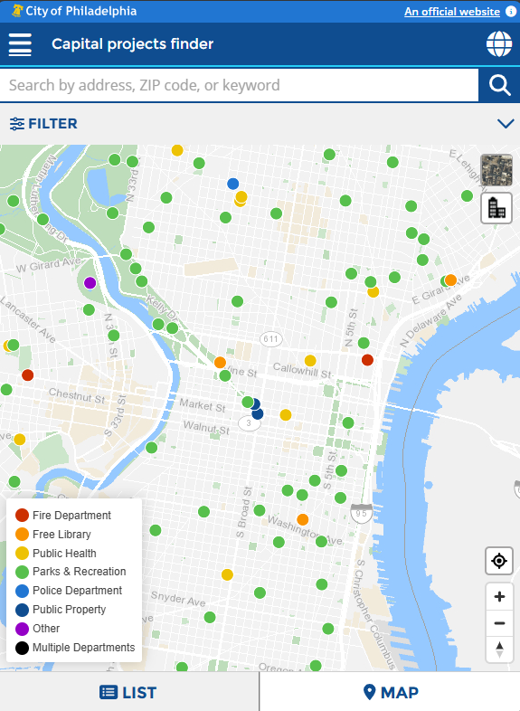 The app uses the framework Pinboard, in npm as @phila/pinboard.