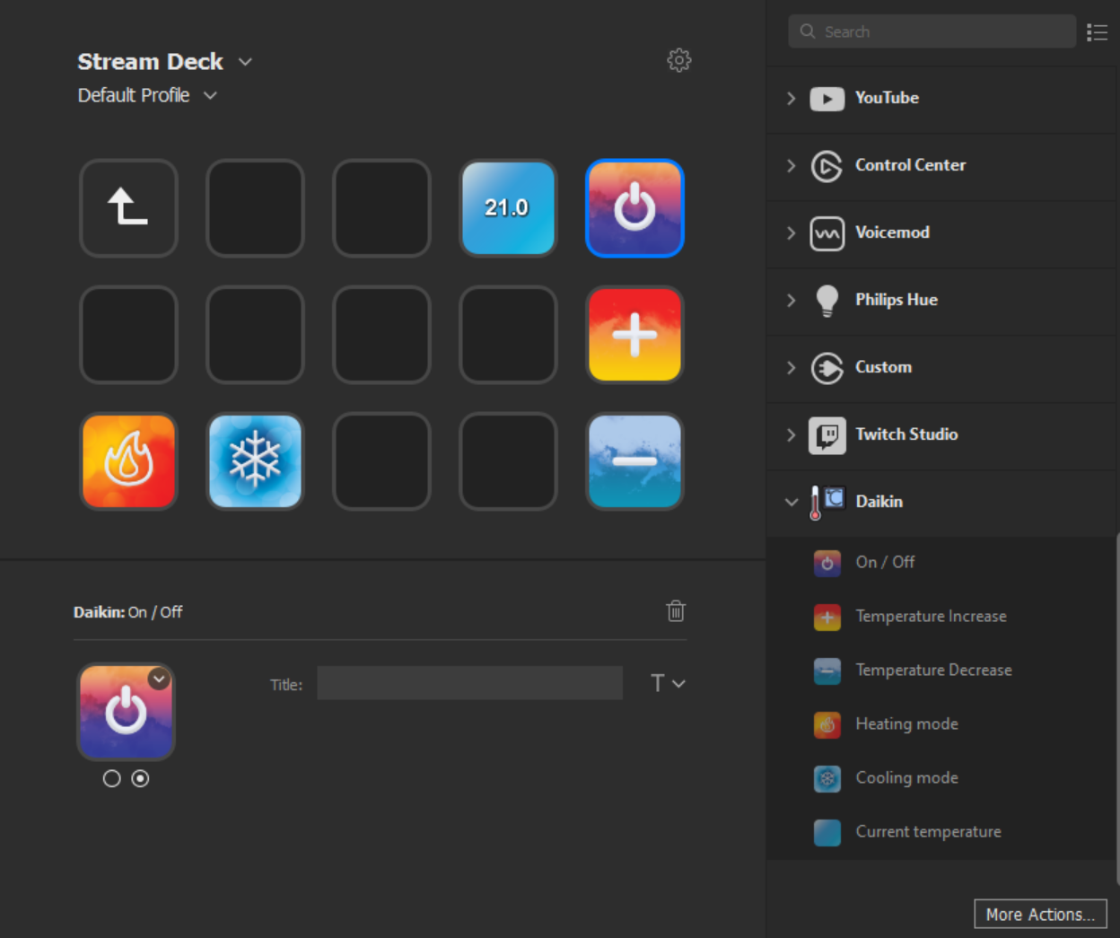 This is a custom elgato plugin that I decided to make because of how much more convenient pressing a button is than grabbing my AC remote and going from there