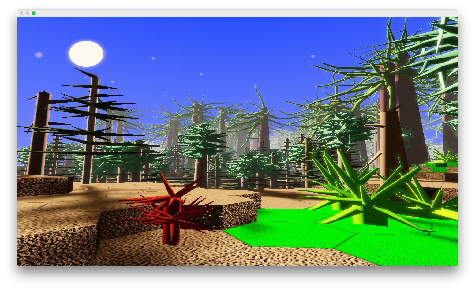Everything you see is procedurally generated -- there are no static textures, meshes or worlds! A different seed will generate completely different textures, plants, stars and a different world. You can find more images further down.