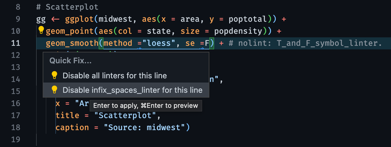 Code actions are improved to support disable relevant linters when diagnostics are present.