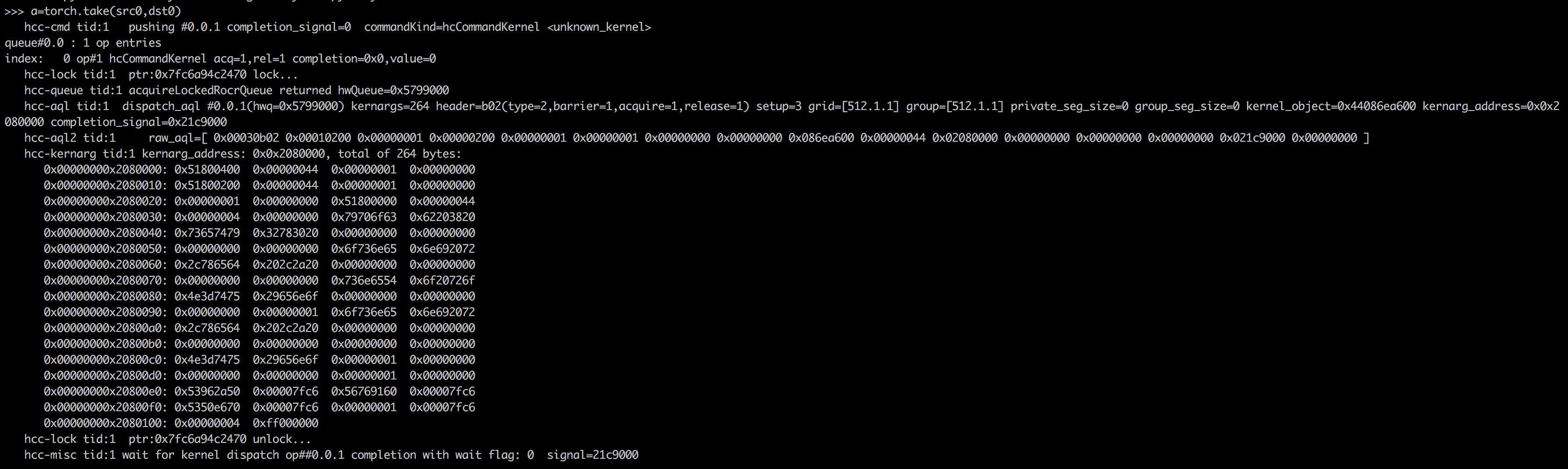 A kernel is launched and sent to the packet processor to be processed. The kernel's completion signal handler never receives the 0 value (indicates completion), leading to an indefinite kernel hang.