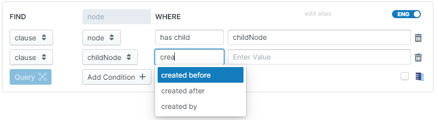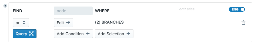 Query Builder supports advanced logical operators that allow you to create complex queries with multiple branches. These operators enable you to build sophisticated queries that can handle multiple scenarios or exclude specific conditions.