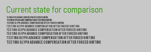 Forced Autohint requires left and right bearings to be taken into acccount during kerning calculation. Without this the gaps between small glyph sizes are twice as wide on a lot of fonts.
