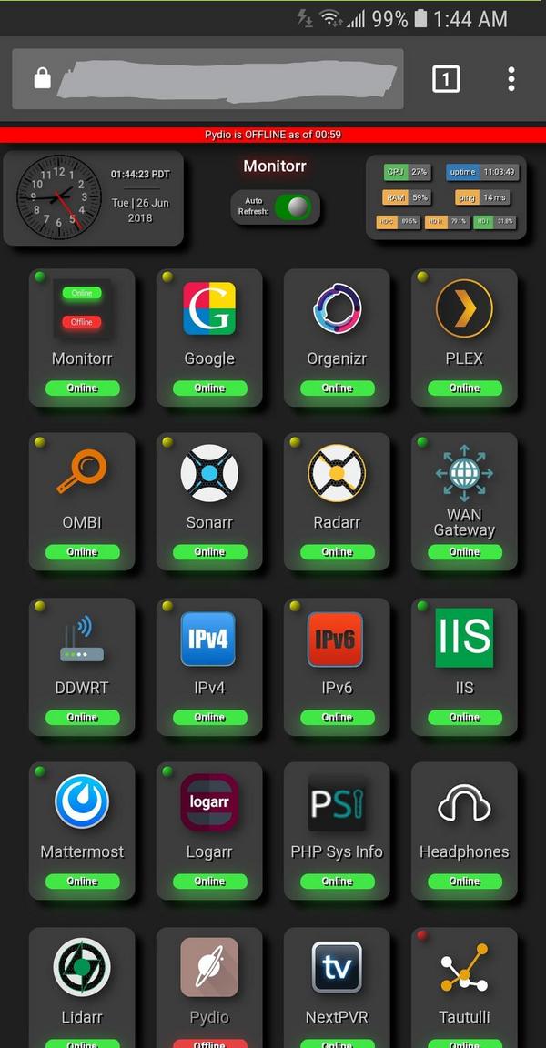 NOTICE (27 June 18): If updating to version 1.7 from ANY previous version, BEFORE updating backup your custom.css file located at: [Monitorr install path]/assets/data/css/custom.css . After the update is complete, simply restore the custom.css file to the same location overwriting the custom.css file that was updated. This is due to a bug which has been resolved in version 1.7 therefore this process will no longer be needed in future updates. See the WiKi Update Notice for more information.