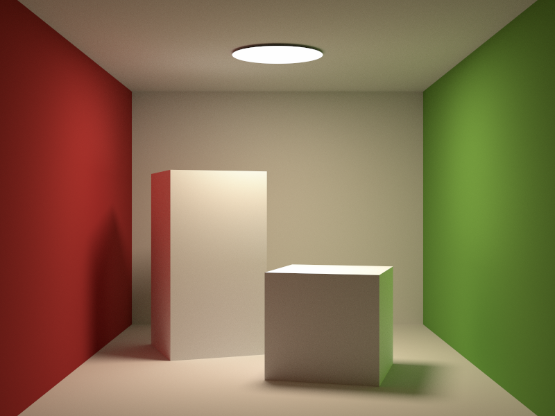 Below is a sample render of the classic Cornell box scene rendered with tray's path tracer integrator using 128/2048 adaptive sampling for each pixel.