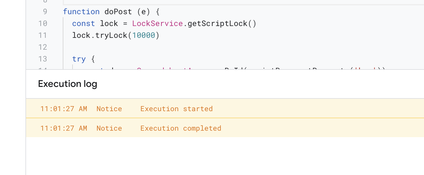 After giving the script the correct permissions, you should see the following output in the script editor console: