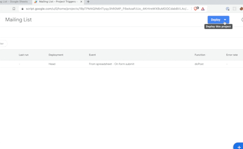 Mailing List Form(This can be anything that you want. Just make it descriptive.) - Web app → Execute As: