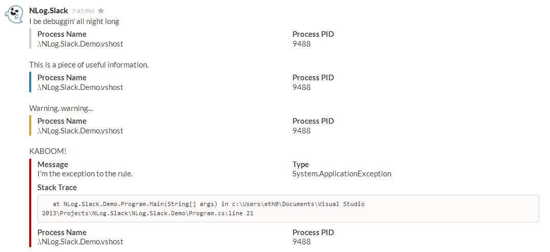 </nlog>Note: it's recommended to set async="true" on targets so if the HTTP call to Slack fails or times out it doesn't slow down your application.