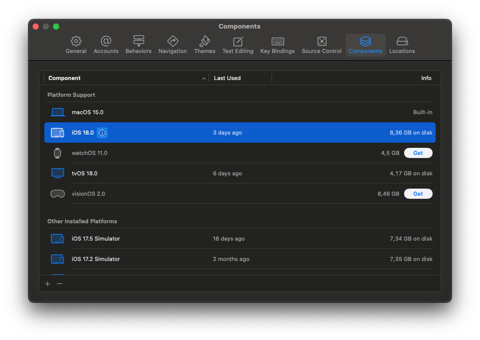The fix is to open Xcode, go to the menu "Xcode (top left) -> Settings -> Components", and make sure the platform component for the latest iOS version is installed (iOS 18 in this case, in Xcode 16.0):