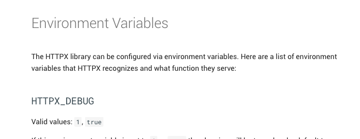 | Here are a list of environment variables that HTTPX recognizes | ||