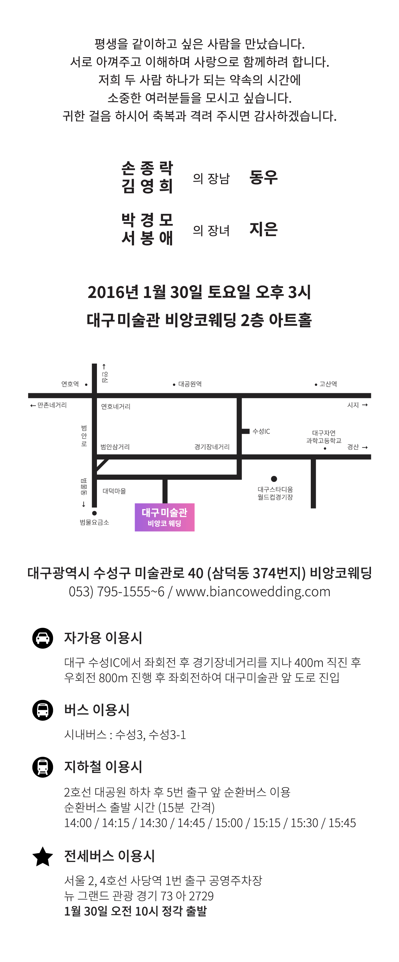 손동우&박지은 2016년 1월 30일 토요일 오후 3시 대구미술관 비앙코웨딩