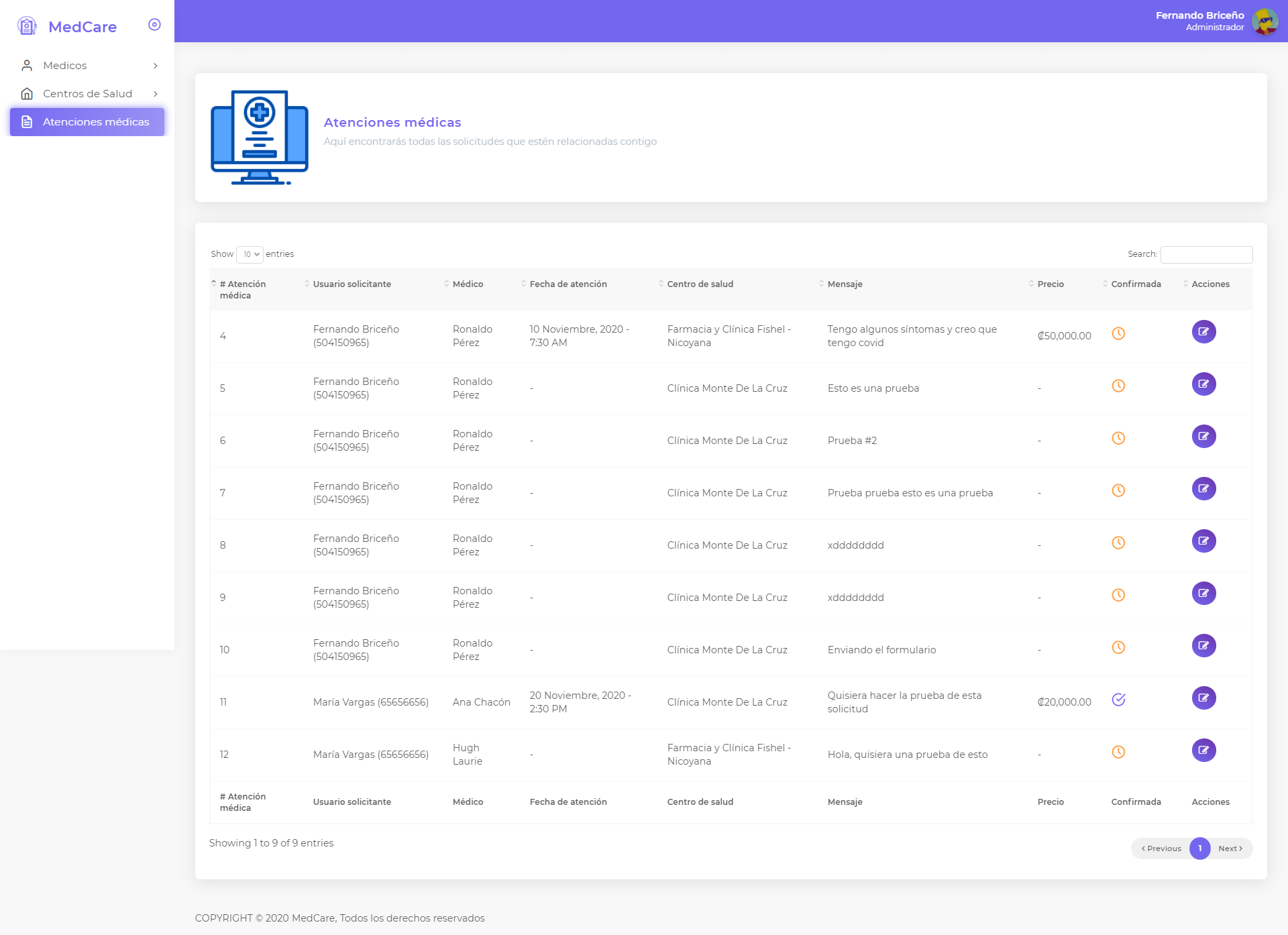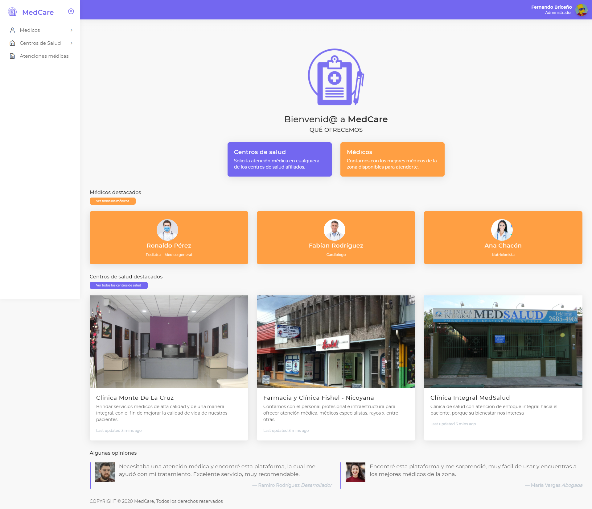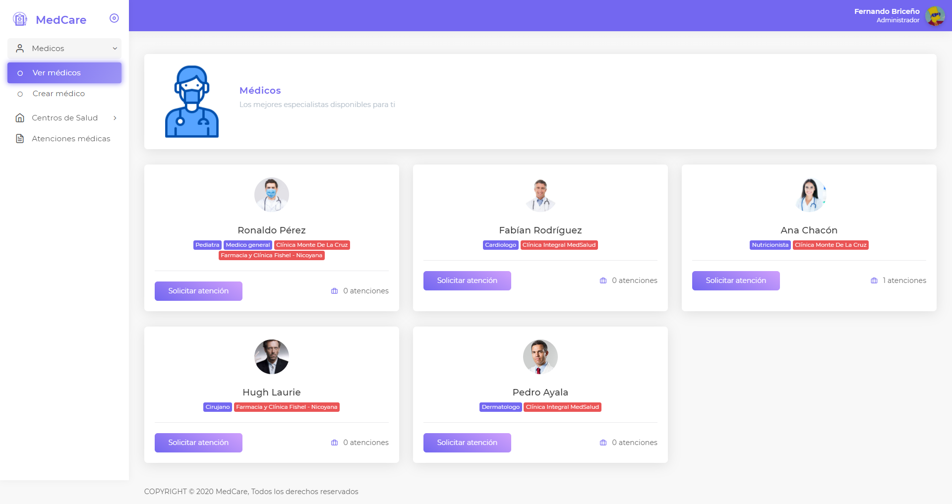 Este sistema es para la administración de atenciones médicas en los diferentes centros de salud, se cuenta con un amplio directorio de médicos disponibles para atender a las personas.