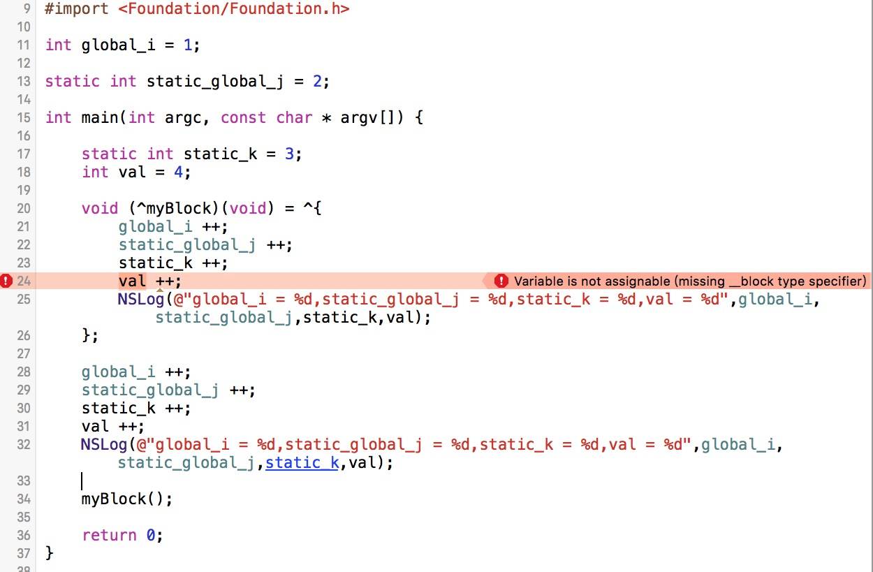 NSLog(@"Block外 global_i = %d,static_global_j = %d,static_k = %d,val = %d",global_i,static_global_j,static_k,val);