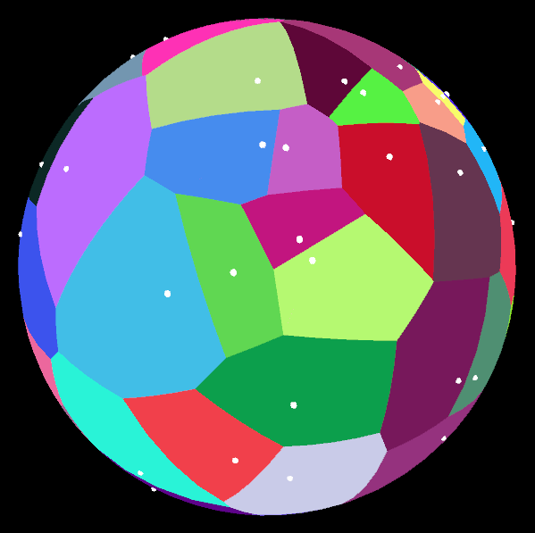 $ ./gensites-sphere | ./voronoi.sh -s | ./display-sphere