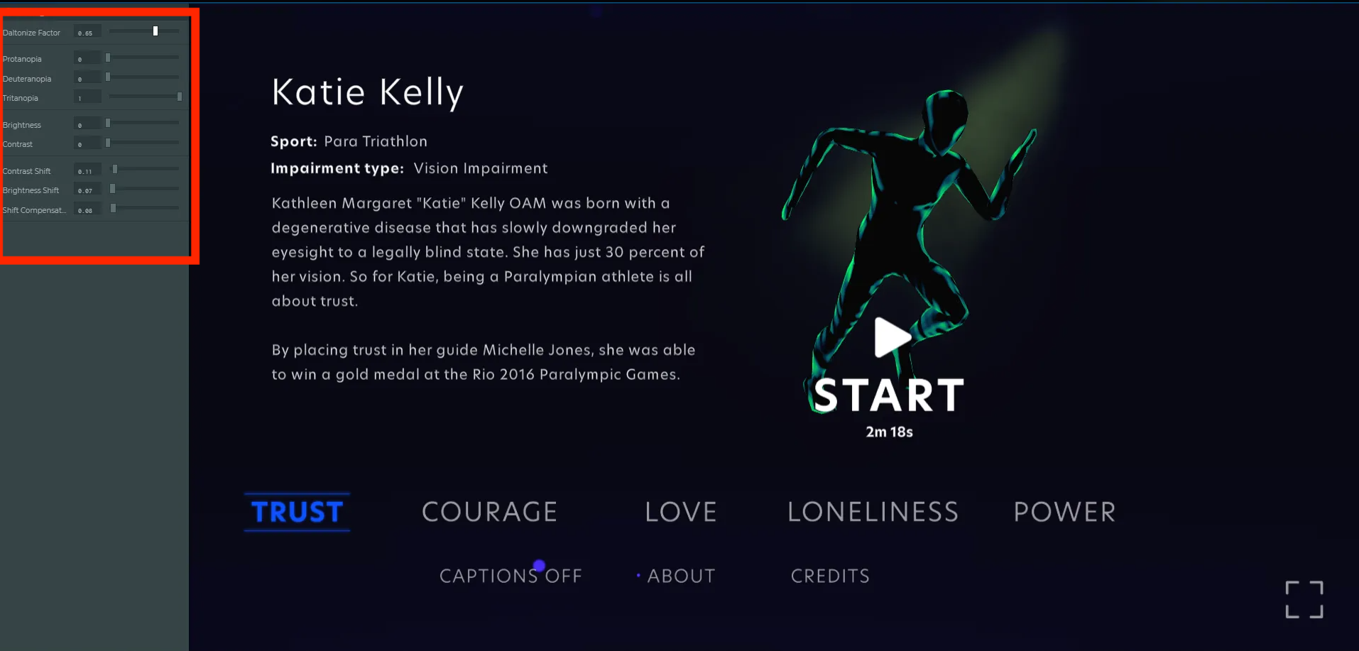 - Ability to adjust the speed of audio cues and captions to use preference for faster or slower playback.