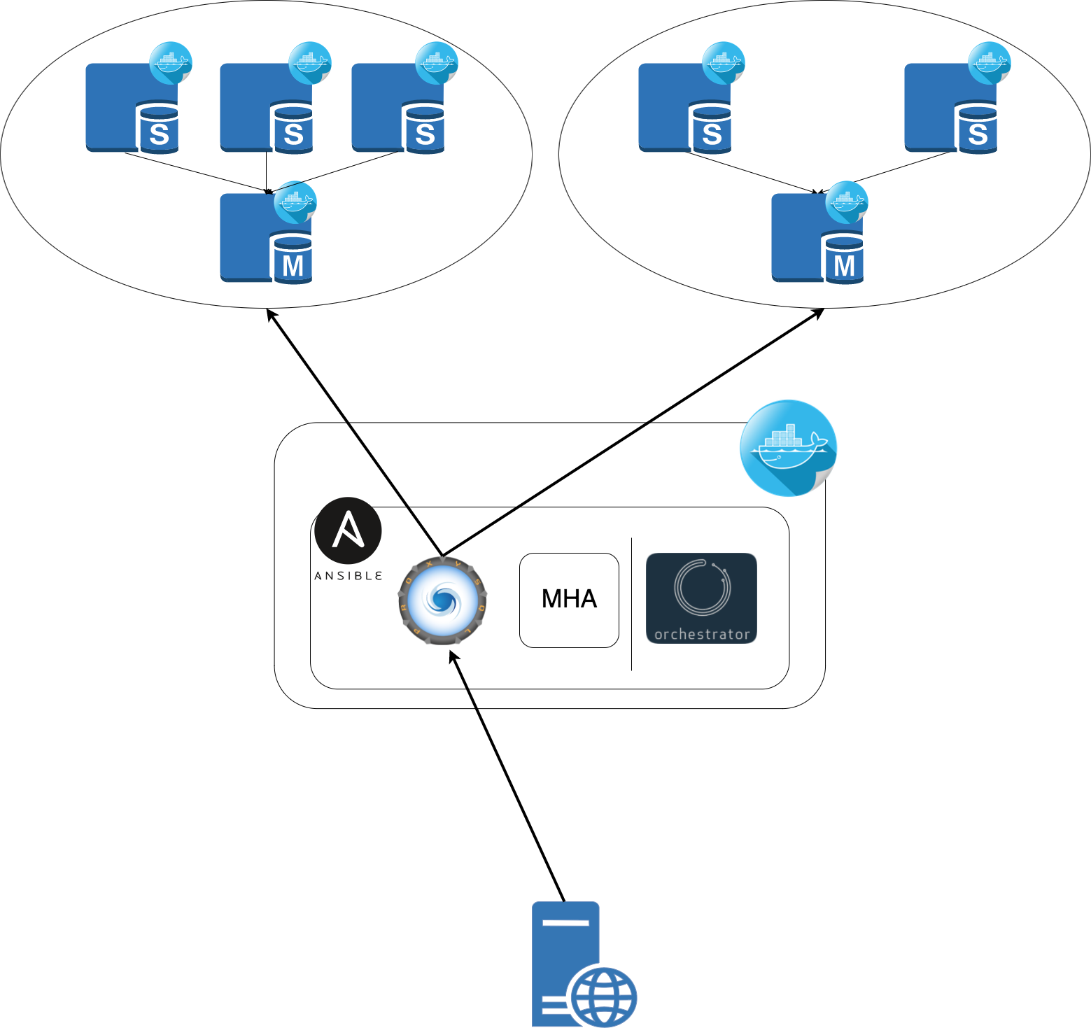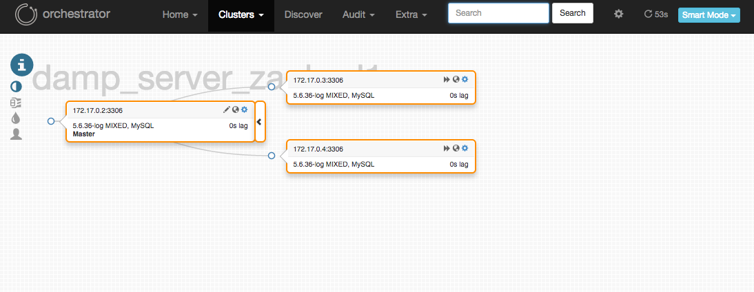 Orchestrator made part of the setup. Since both Orchestrator and MHA run with auto deadmaster failover disabled by default they can be tested independently.