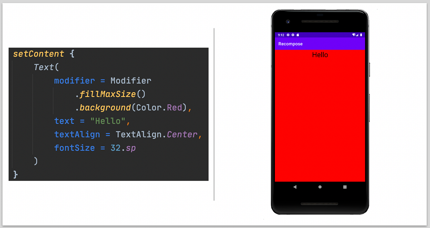 在recomposition之前,我们需要先进行组合。 Compose 是绘制一些东西。我们可以通过使用可组合函数来做到这一点。