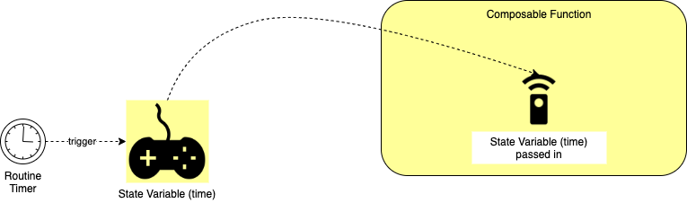 - 状态变量用作远程控制,使可组合函数能够更新其 UI 内容。