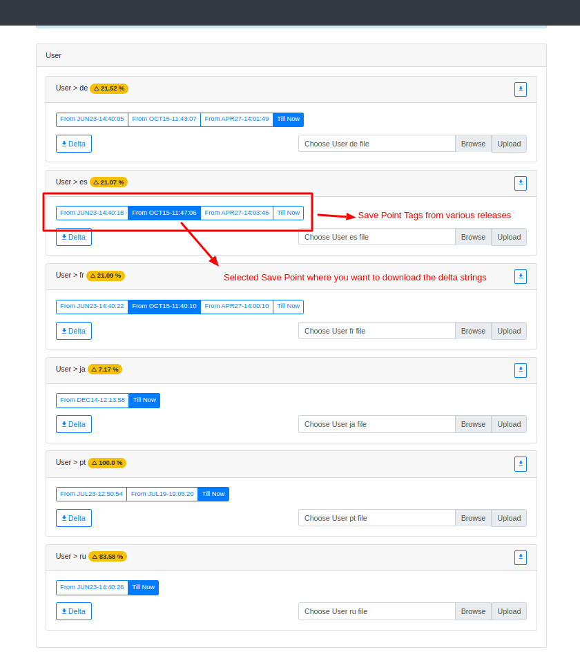 Tagger is useful for calculating delta diff between json or yml files, and it is basically useful to manage translations string for localization purpose. When your application grow, simulteniously your language strings file size also increases, and then it will become a pain for Maintainers or Owners. For that reason I have introduced this basic diff calculator on temp basis.