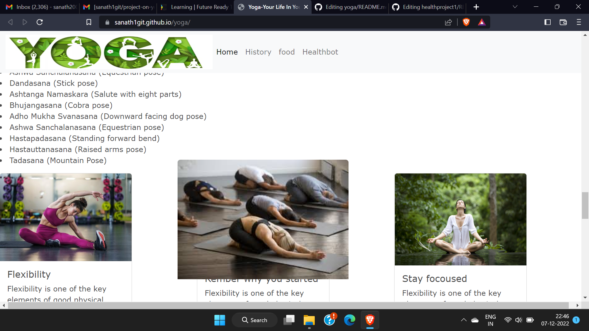 This is a web based health related application developed to provide yoga related services and to clarify doughts of users in india.