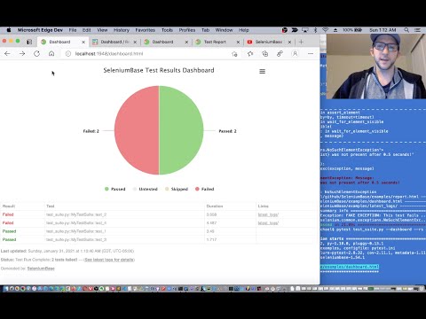 🔵 The --dashboard option for pytest generates a SeleniumBase Dashboard located at dashboard.html, which updates automatically as tests run and produce results. Example: