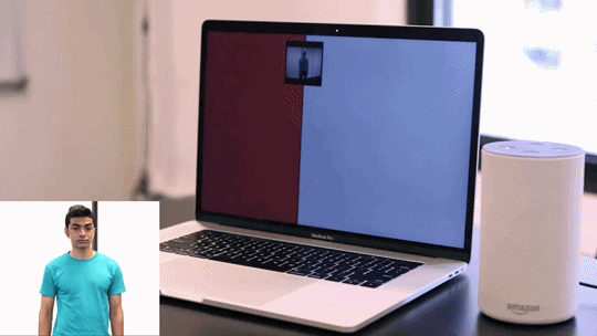 Run the demo in latest Chrome/Firefox to train the model using your own words and corresponding signs/gestures. If you have an Echo plugged in closeby, it should respond, otherwise simply play around and have fun. You will need to give permission to access your webcam and microphone.
