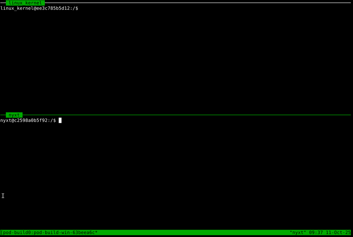 nyxtandlinux_kernelwith working main scripts have been added topod-buildah/build-data, serving as templates for build containers.