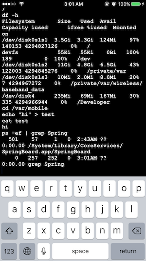 This app was developed to be an on-device solution for connecting to the iOS kernel exploit published by Google's Project Zero. In particular, the exploit provides access to a root shell on port 4141, and with this app it can be connected to at localhost:4141 from the device itself.